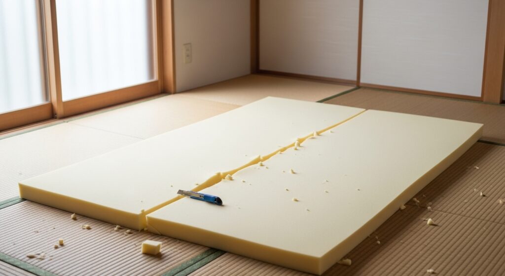 たった数カ所をカットするだけで、数万円級の寝具が“再び現役”になるんです。